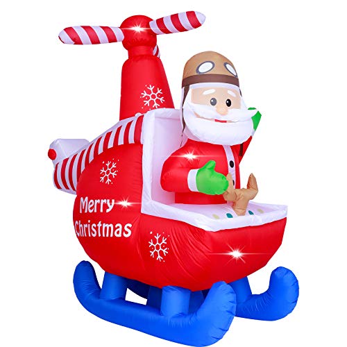 ASTEROUTDOOR 6ft Christmas Inflatable Decorations Claus Blow Up Built-in LED Outdoor Indoor Yard Lighted for Holiday Season, Quick Air Blown, 6 Feet High, Santa w/Helicopter