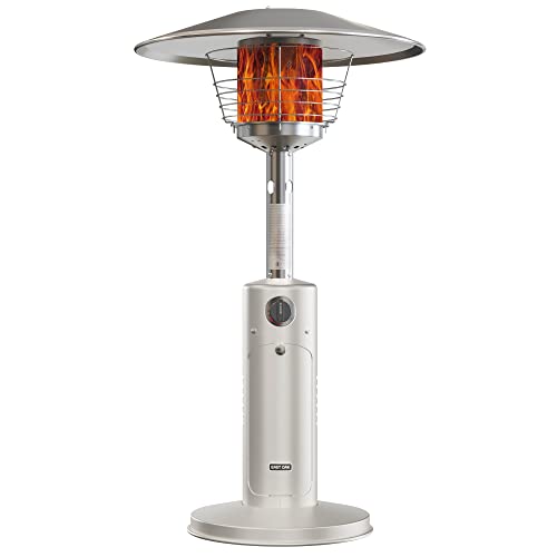 EAST OAK Portable Outdoor Heater, Tabletop Patio Heater 11000 BTU, Mini Propane Gas Heater with 304 Stainless Steel Burner, Triple Protection System, Suitable for Garden, Patio, Restaurant White