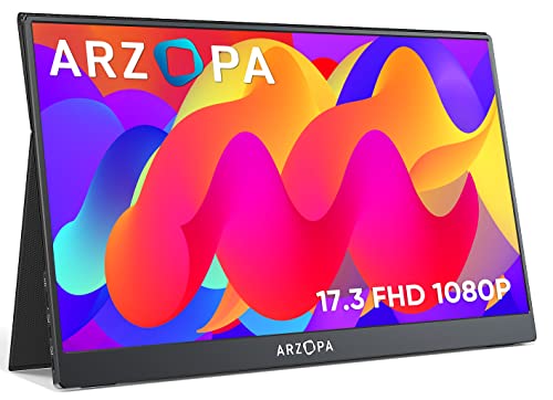 Arzopa Portable Monitor 17.3 Inch, 1080P FHD HDR IPS Laptop Computer Monitor HDMI USB C External Screen with Dual Speakers for PC Mac Phone Xbox Switch PS5, Smart Cover Included