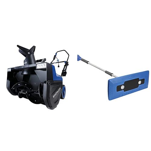 Bundle of Snow Joe SJ627E 22-Inch 15-Amp Electric Snow Thrower w/Dual LED Lights, Blue + Snow Joe SJBLZD Illum-n LED Lighted 4-in-1 Snow Broom Plus Ice Scraper, 1, Blue