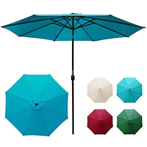 LAUREL CANYON 11ft Patio Market Table Outdoor Umbrella with Push Button Tilt, Crank and 8 Sturdy Ribs for Lawn, Garden, Deck, Backyard & Pool, Turquoise