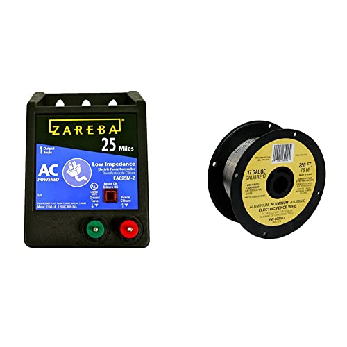 Zareba EAC25M-Z 25 Mile AC Powered Low Impedance Charger & Fi-Shock FW-00018D 250-Feet 17 Gauge Spool Aluminum Wire