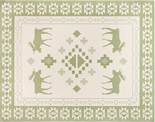 Gertmenian 22927 Outdoor Rug Freedom Collection Nature Themed Smart Care Deck Patio Carpet, 8x10 Large, State Alaska Alces Alces Moose Elk Green Teal