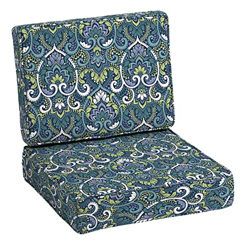 Arden Selections ProFoam Essentials Outdoor Deep Seating Cushion Set 24 x 24, Sapphire Aurora Blue Damask