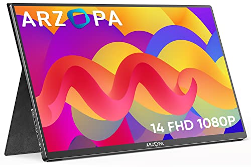 Arzopa 14“ Portable Monitor, Ultra Slim Portable Laptop Monitor FHD 1080P External Display with Dual Speakers Second Screen for Laptop PC Phone Xbox PS4/5 Switch, Smart Cover Included-A1 GAMUT Slim