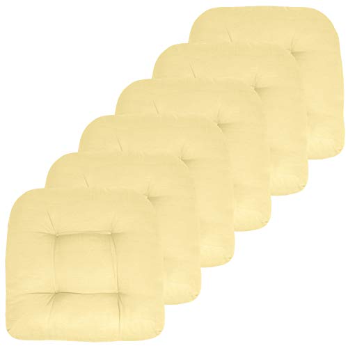 Sweet Home Collection Patio Cushions Outdoor Chair Pads Premium Comfortable Thick Fiber Fill Tufted 19" x 19" Seat Cover, 6 Count (Pack of 1), Yellow
