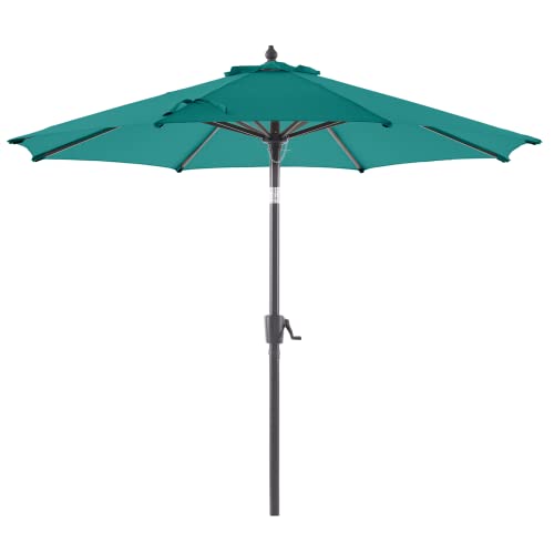 BLUU MAPLE Olefin 9 FT Patio Market Umbrella Outdoor Table Umbrellas, 3-year Nonfading Olefin Canopy, Market Center Umbrellas with 8 Strudy Ribs & Push Button Tilt for Garden, Lawn & Pool (Turquoise)