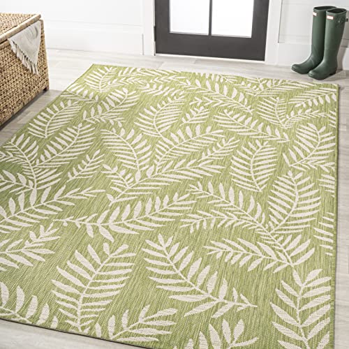 JONATHAN Y SMB119D-8 Nevis Palm Frond Indoor Outdoor Area-Rug, Coastal, Casual, Country Easy-Cleaning,Bedroom,Kitchen,Backyard,Patio,Non Shedding, Green/Cream, 8 X 10