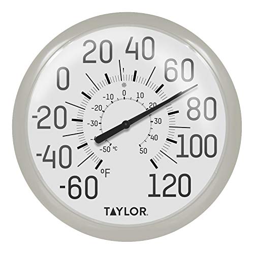 Taylor Precision Products Big and Bold Wall Indoor Outdoor Thermometer, 13.25 inch, Silver