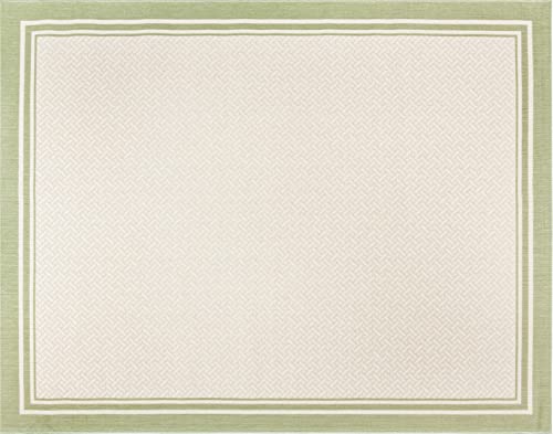 Gertmenian Indoor Outdoor Area Rug, Classic Flatweave, Washable, Stain & UV Resistant Carpet, Deck, Patio, Poolside & Mudroom, 8x10 Ft Large, Simple Border, Green Teal Tan, 22907