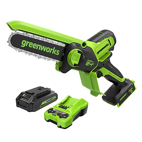 Greenworks 24V 6'' TruBrushless Pruning Saw/Mini Chainsaw, 2.0Ah Battery and Quick Charger Included