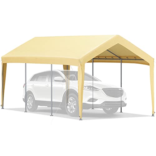 VEVOR 10 x 20 ft Carport Car Canopy, Heavy Duty Garage Shelter with 8 Legs, Car Garage Tent for Outdoor Party, Birthday, Garden, Boats, Adjustable Peak Height from 8.3 ft to 10 ft, Yellow