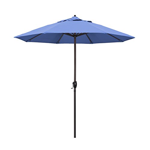 California Umbrella 9' Round Aluminum Patio Umbrella, Crank Lift, Auto Tilt, Bronze Pole, Frost Blue Olefin