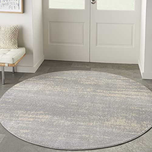 Nourison Essentials Indoor/Outdoor Solid Abstract Grey/Beige 4' x Round Area Rug, Easy Cleaning, Non Shedding, Bed Room, Living Room, Dining Room, Backyard, Deck, Patio (4 Round)