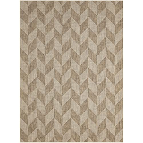 Nicole Miller New York Patio Country Calla Contemporary Herringbone Indoor/Outdoor Area Rug, Brown/Beige, 6'6"x9'2"