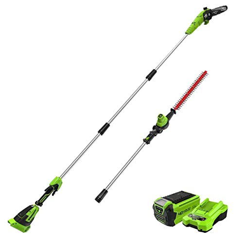 Greenworks 40V 10" Brushless Polesaw + Pole Hedge Trimmer Combo (Great For Pruning and Trimming Branches / Shrubs), 2.5Ah Battery and Charger Included
