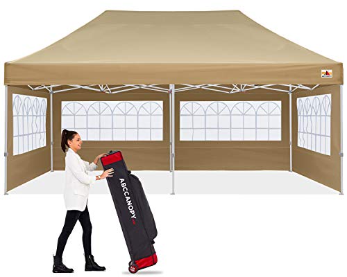 ABCCANOPY Outdoor Winter Gazebo 10x20, Premium Instant Pop Up Canopy Tent with Elegant Church Window,Snow and Rain Protection, Bonus Wheeled Bag,Beige