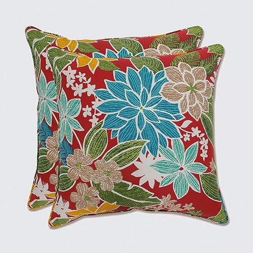 Pillow Perfect Tropic Floral Outdoor Throw Accent Pillow, Plush Fill, Weather, and Fade Resistant, Large Square - 18.5" x 18.5", Red/Green Bora Cay, 2 Count