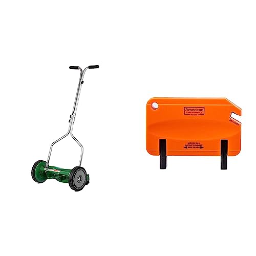 Scotts Outdoor Power Tools 304-14S 14-Inch 5-Blade Push Reel Lawn Mower, Green & American Lawn Mower Co. SK-2 Reel Lawn Mower Hand Sharpener, Orange