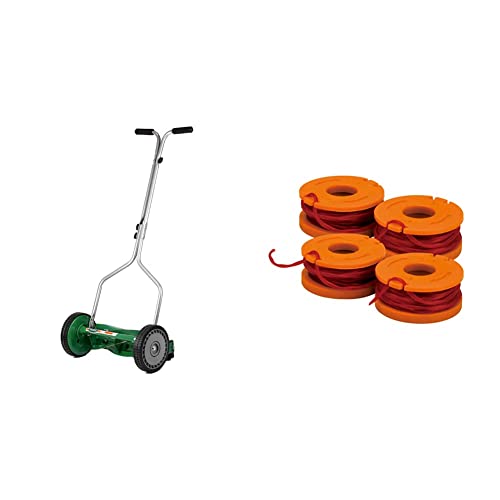 Scotts Outdoor Power Tools 304-14S 14-Inch 5-Blade Push Reel Lawn Mower, Green & Worx WA0047 4-Pack String Trimmer Replacement Line, Orange