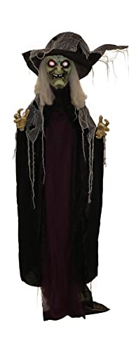 Haunted Hill Farm 6.9 ft. Animated Standing Witch Halloween Prop | 5 Voice Greetings | Flashing Red Eyes | Touch Activated | Battery-Operated | Halloween Decoration | HHWITCH-27FLSA,Multi