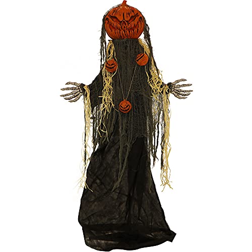 Haunted Hill Farm 5.25 ft. Standing Pumpkin Halloween Prop Wearing a Gray Cloak Covered in Vines, Flashing Green LED Lights, Lightweight