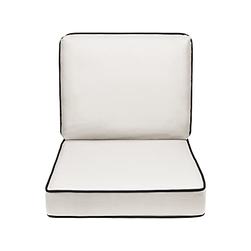 Quality Outdoor Living All- Weather Patio Chair Deep Seat and Back Cushion, 23x26, Linen W/Black Piping