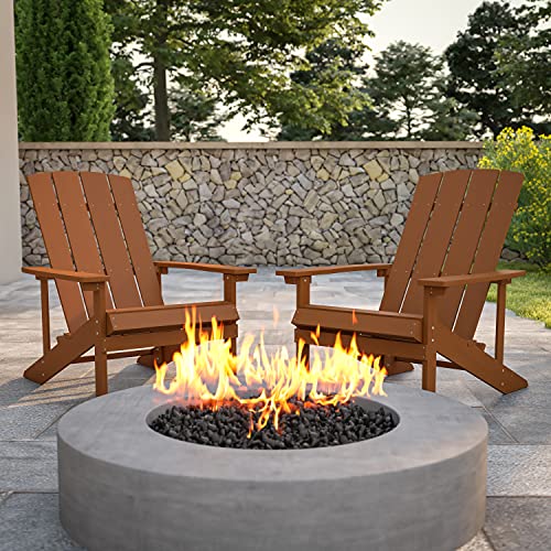 Flash Furniture Charlestown Poly Resin Adirondack Chair - Teak - All Weather - Indoor/Outdoor - Set of 2