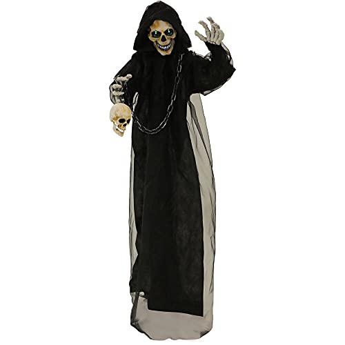 Haunted Hill Farm Life-Size Animated Grim Reaper Prop w/Flashing Eyes and Ribs Indoor/Outdoor Halloween Decoration