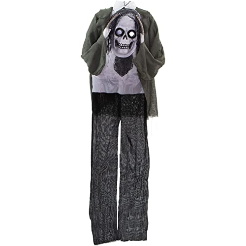 Easy to Assemble: Scare prop includes an easy-to-assemble stand with a broad base for stability; Optionally, use the hanging loop to hang from trees, porch, overhang, etc. (mounting accessories not included)