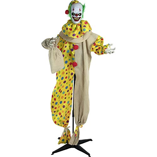Haunted Hill Farm 65-in. Animatronic Clown, Indoor/Outdoor Halloween Decoration, Flashing Red Eyes, Poseable, Battery-Operated