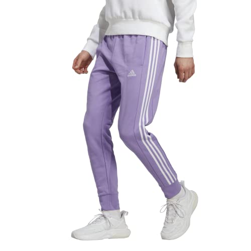 adidas Men's Essentials French Terry Cuffed 3-Stripes Pants, Violet Fusion/White, X-Large