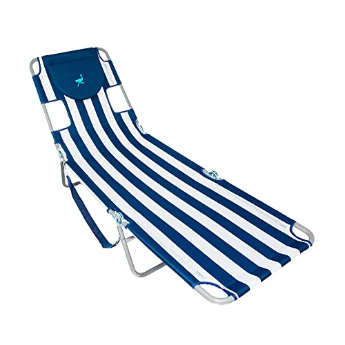 Ostrich Chaise Lounge Blue and White Striped 77.16 x 24.6 x 13.4 inches assembled
