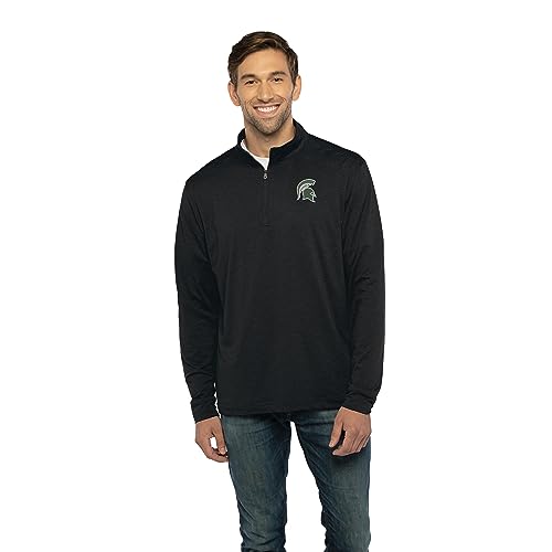 Vantage Apparel Men's Collegiate Premium Lightweight Stretchy Team Color 1/4 Zip Pullover, Michigan State Spartans, Black, X-Large