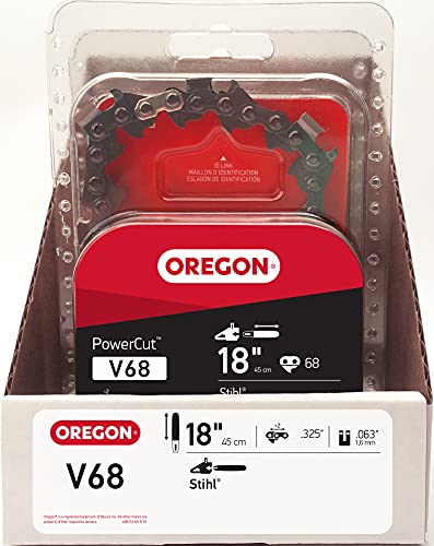 Oregon V68 PowerCut Chainsaw Chain for 18-Inch Bar, 68 Drive Links, .325" Pitch, .063" Gauge, Fits Stihl (22LPX068G),Grey