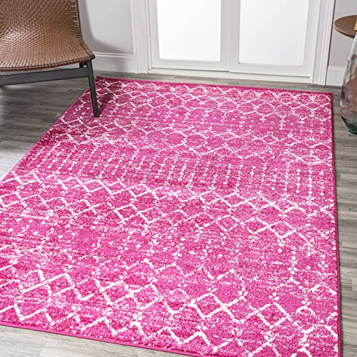 JONATHAN Y MOH101G-8 Moroccan Hype Boho Vintage Diamond Indoor Area Rug Bohemian Easy Cleaning Bedroom Kitchen Living Room Non Shedding, 8 X 10, Fuchsia/Ivory