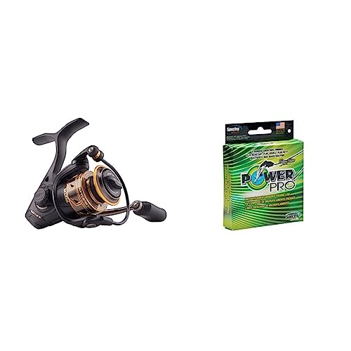 PENN Battle III Spinning Inshore/Nearshore Fishing Reel, HT-100 Front Drag, max of 25lb | 11.3kg & Power Pro Spectra Fiber Braided Fishing Line, Moss Green, 300YD/30LB