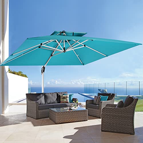 ABCCANOPY 10FT Cantilever Patio Umbrella Double Top Square Umbrella Outdoor Offset Umbrella with 360° Rotation,Turquoise