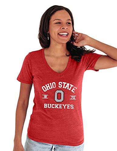 Blue 84 Women's Ohio State Buckeyes T Shirt Tri-Blend Mascot, Ohio State Buckeyes Red, Medium
