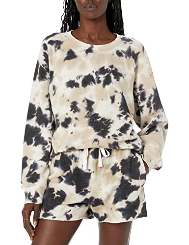 The Drop Women's Caroline Raglan Long Sleeve Fleece Sweatshirt, Black Tie Dye, M
