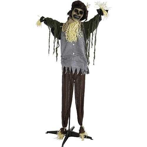 Haunted Hill Farm Life-Size Scary Skeleton Scarecrow Prop with Touch Activated Lights and Sound, Battery-Operated Indoor or Covered Outdoor Halloween Decoration