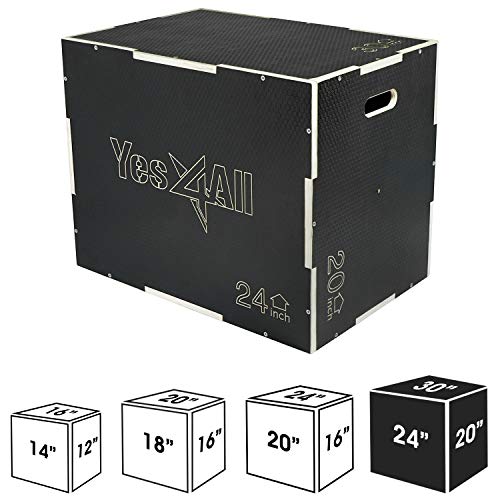 Yes4All 3 in 1 Non-Slip Wooden Plyo Box, Plyometric Box for Home Gym and Outdoor Workout 30" 24" 20" - Black