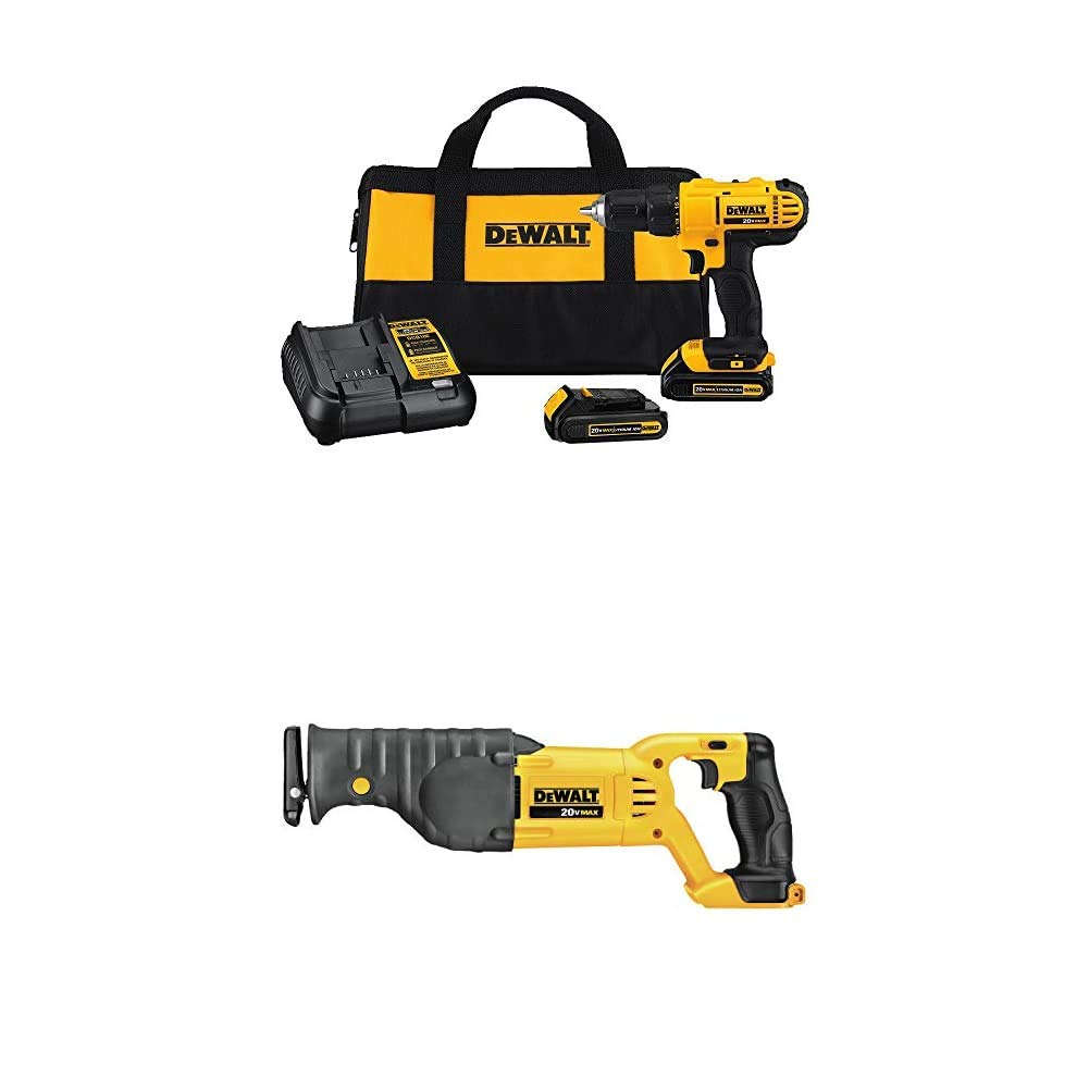 Dewalt DCD771C2 20V MAX Cordless Lithium-Ion 1/2 inch Compact Drill Driver Kit and Reciprocating Saw, Bare Tool Only