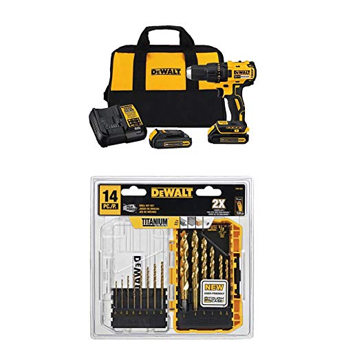 DEWALT DCD777C2 20V Max Lithium-Ion Brushless Compact Drill Driver with DW1354 14-Piece Titanium Drill Bit Set