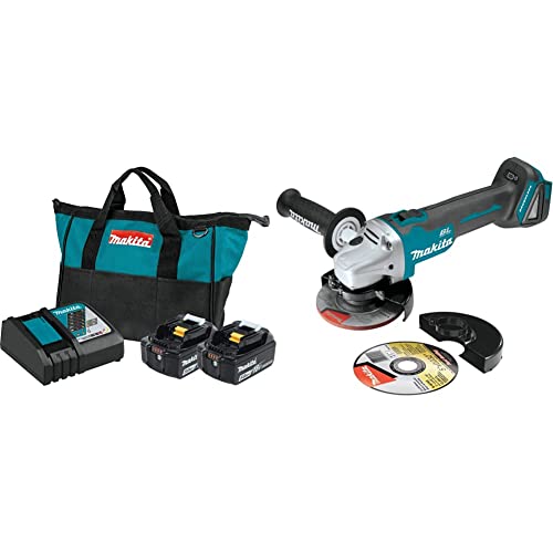 Makita BL1850BDC2 18V LXT Lithium-Ion Battery and Rapid Optimum Charger Starter Pack (5.0Ah) with XAG04Z 18V LXT Lithium-Ion Brushless Cordless 4-1/2” / 5" Cut-Off/Angle Grinder