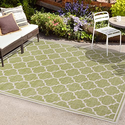 JONATHAN Y SMB109G-9 Trebol Moroccan Trellis Textured Weave Indoor Outdoor Area-Rug, Modern, Coastal, Casual Easy-Cleaning,Bedroom,Kitchen,Backyard,Patio,Non Shedding, Green/Cream, 9 X 12