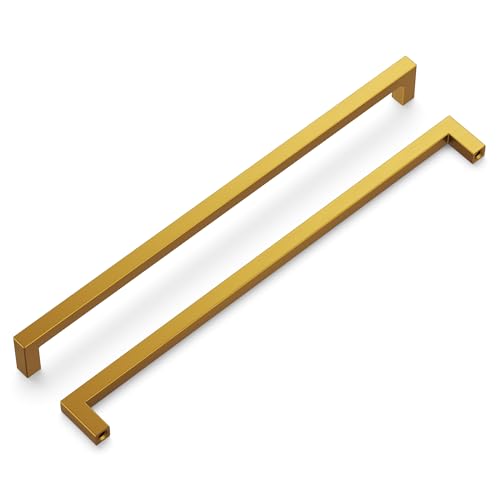 Hickory Hardware 5 Pack Solid Core Kitchen Cabinet Pulls, Luxury Cabinet Handles, Hardware for Doors & Dresser Drawers, 12 Inch Hole Center, Brushed Golden Brass, Skylight Collection