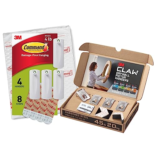 3M CLAW Drywall Picture Hangers holds 45 lb. & Command Sawtooth Picture Hangers, White, 4-Hangers
