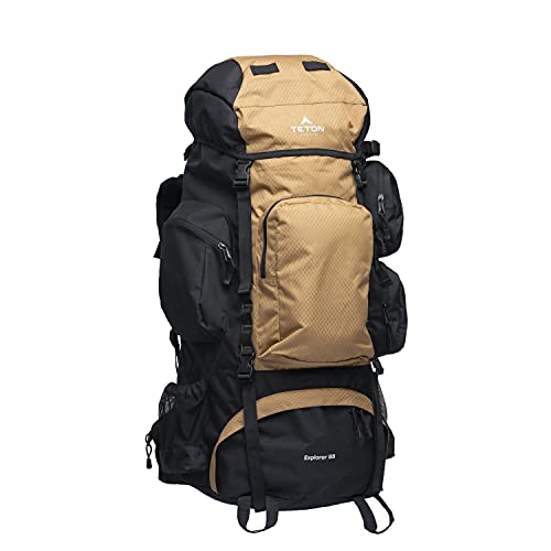 TETON Sports Explorer Internal Frame Backpack – High-Performance Backpack for Hiking, Camping, Backpacking; Adjustable for Men, Women and Youth; Rain Cover, 85L, Buck Brown