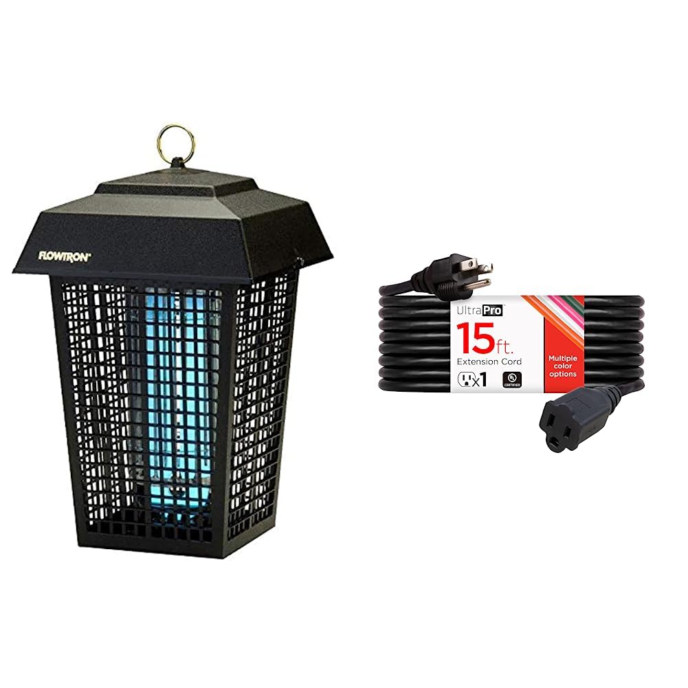 Flowtron BK-40D Electronic Insect Killer, 1 Acre Coverage,Black & UltraPro 15 Ft Extension Cord, Double Insulated, Indoor/Outdoor, General Purpose, 16 Gauge, Black